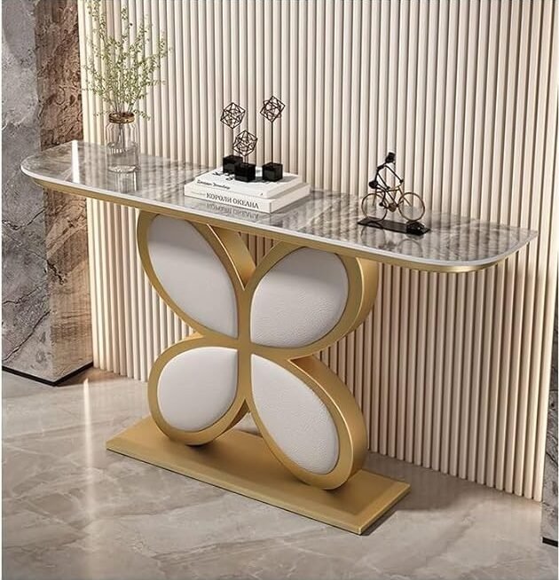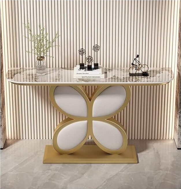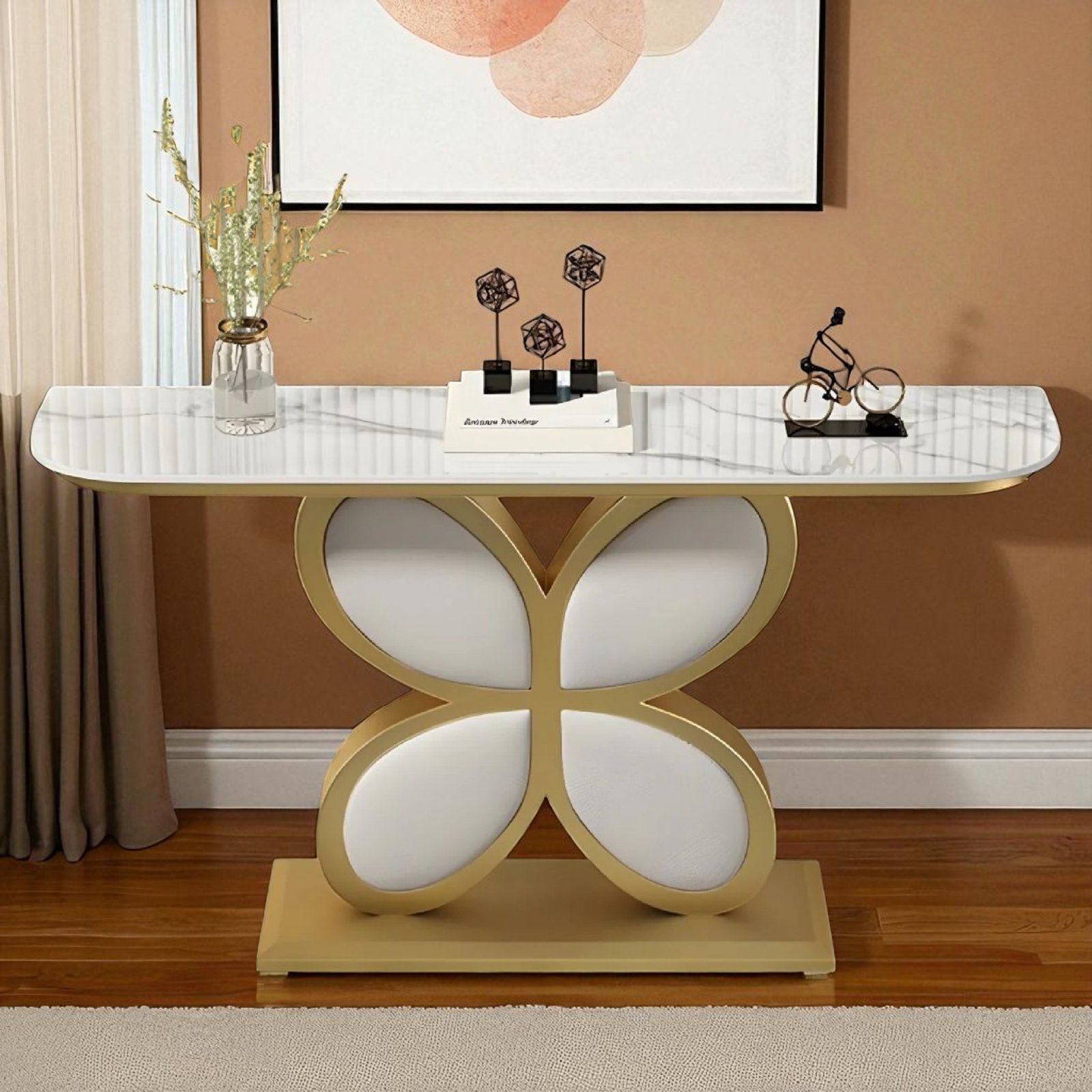 Luxury Console Table Featuring Gold Floral Flower Design & Marble Top
